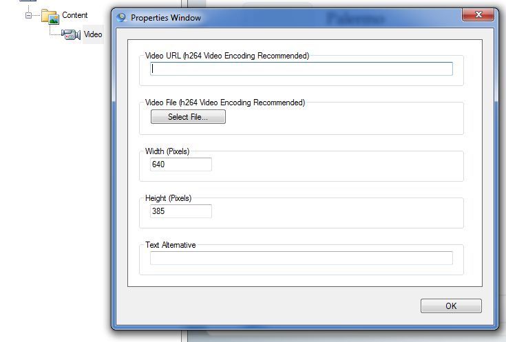 You can either add a URL for your video or click on Select File and browse to Add and then Use a video file.