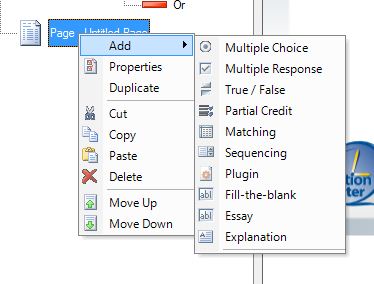 The new page will appear as an icon in the quiz tree. If you right click on the icon a drop down list will open: